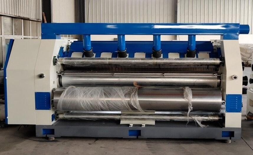 采用油浸式傳動箱,萬向節連接輸送動力與速度,直接驅動瓦楞輥,壓力輥,涂膠輥,限膠輥,隔離了主振動源,減小振動,保證整機運行精度,提高瓦楞壓制品質.風機采用離心真空吸風機.