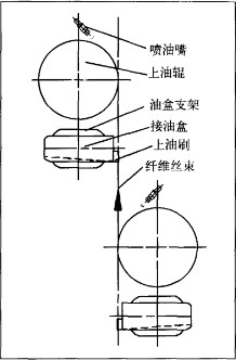 上油機絲一種摩擦式,由箱體、電機傳動、上油輥、噴油嘴、接油盒、油盒支架、上油刷上油刷、滴落的油劑通過上油刷完成對絲束的二次上油。如此反復上油,大大提高了上油機的上油效率。提供上油機的上油效率和油劑利用率。。